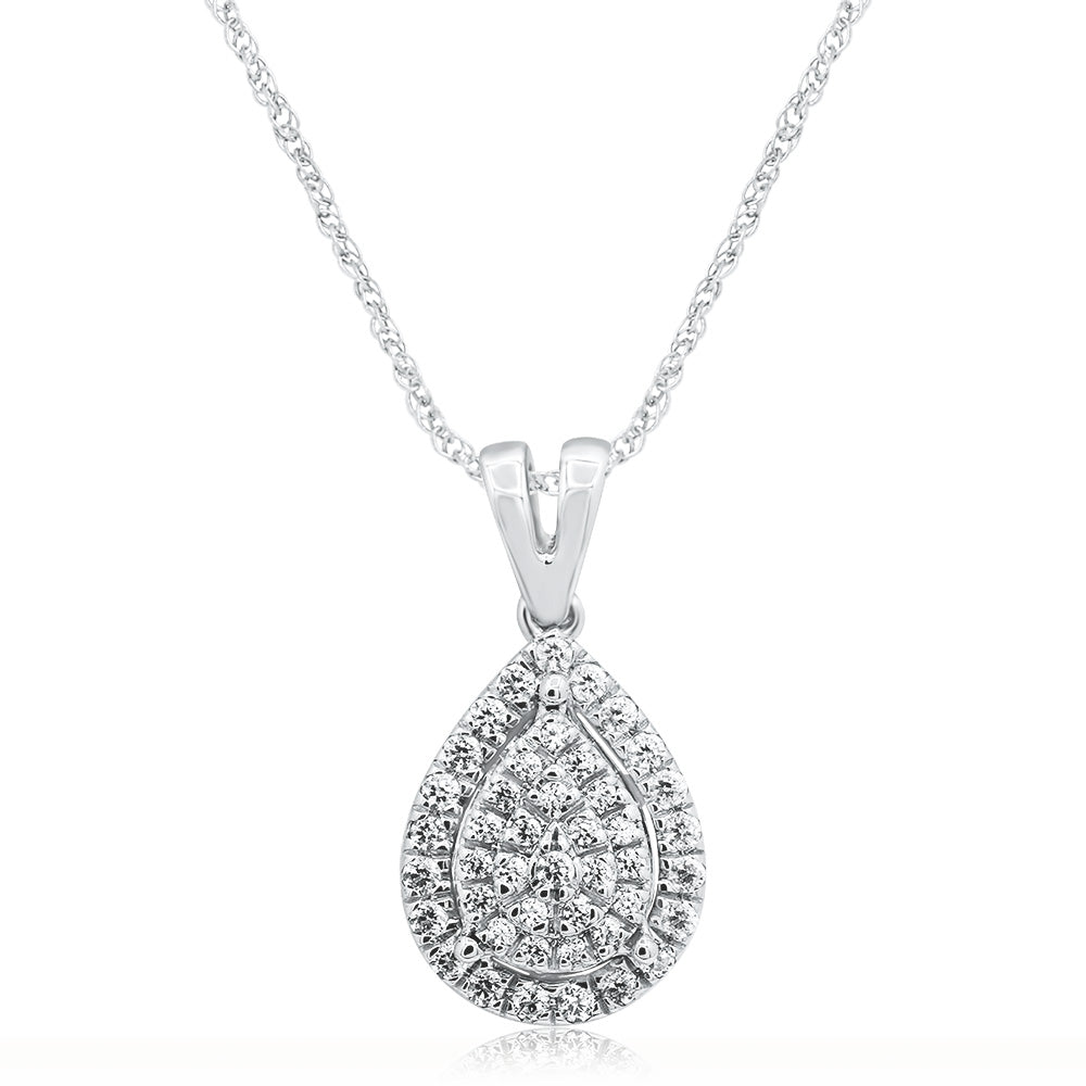 Sterling Silver 1/4 Carat Pear Shap Pendant With 45cm Rope Chain