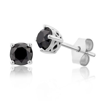 Sterling Silver 1.5 Carat Black Diamond Stud Earrings