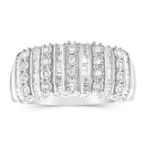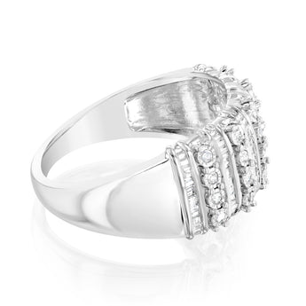 Sterling Silver 1/5 Carat Diamond Ring with Round Brilliant Cut and Baguette Diamonds