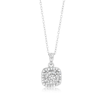 Sterling Silver 1/5 Carat Natural Diamond Cushion Shaped Pendant on 46cm Chain