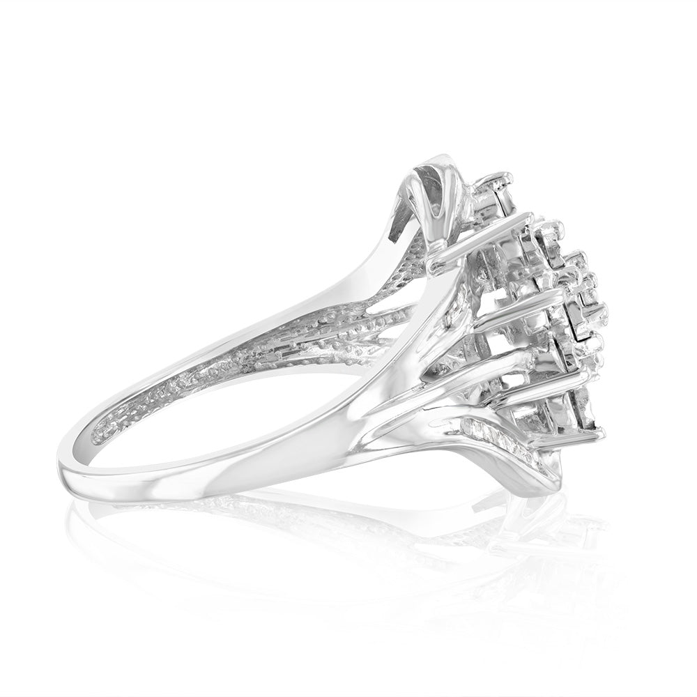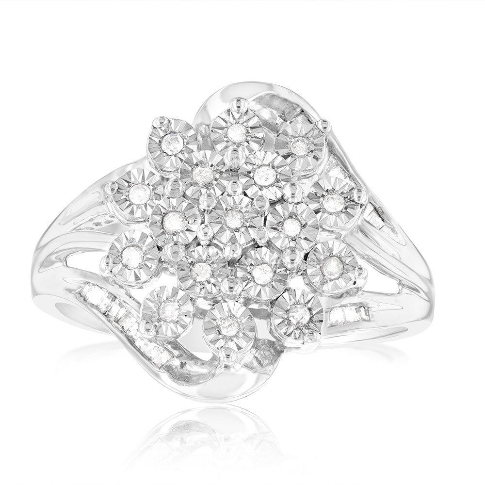 Sterling Silver 1/6 Carat Diamond Ring With Round and Baguette Cut Diamonds