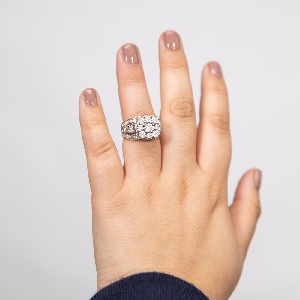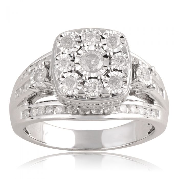 Sterling Silver 1 Carat Diamond Cushion Shape Cluster Shape Dress Ring