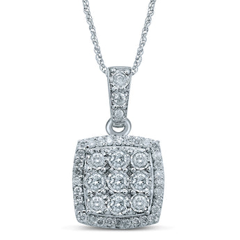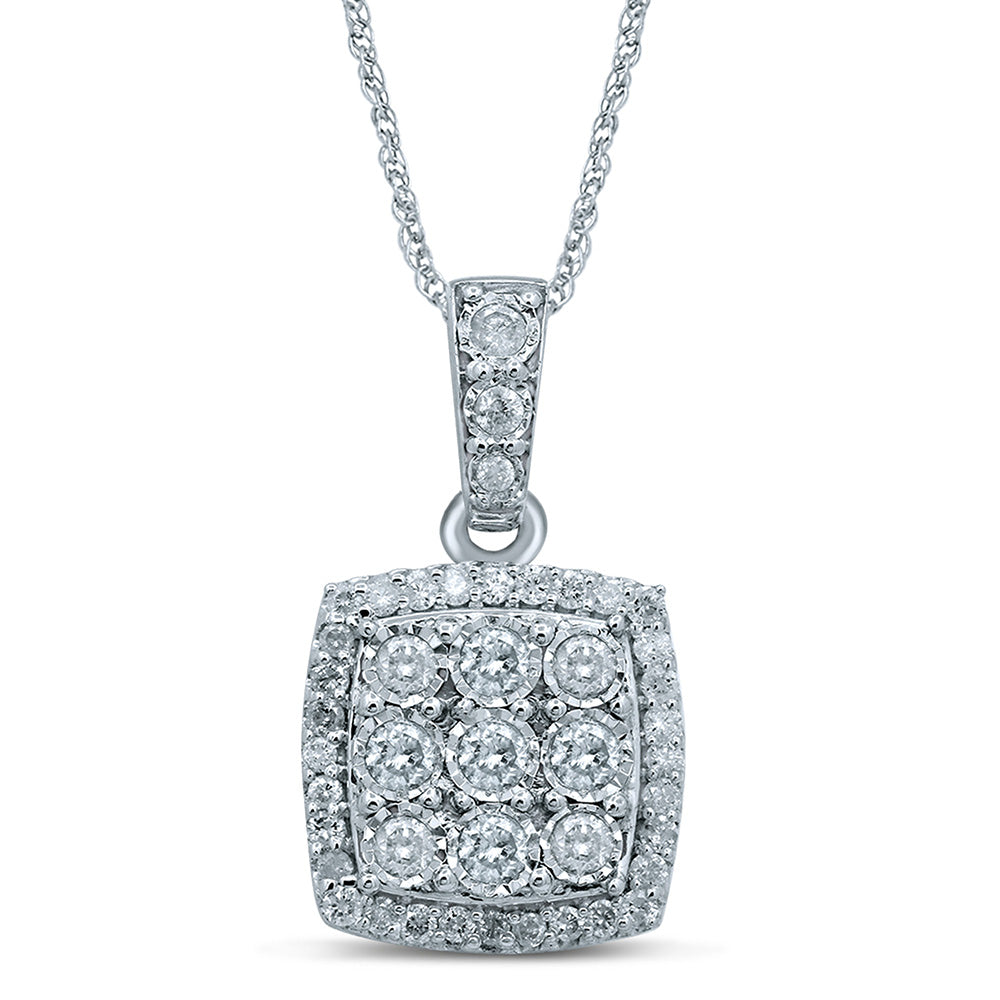 Sterling Silver 1 Carat Diamond Cushion Shape Pendant on 45cm Chain