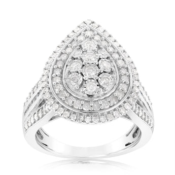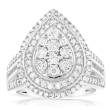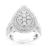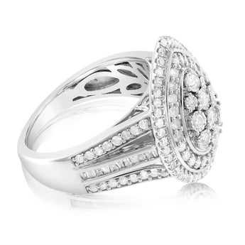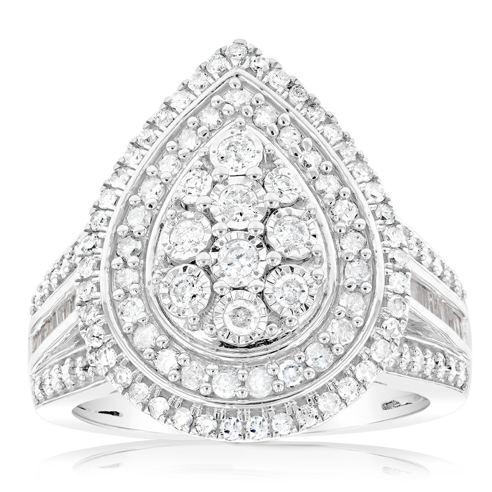 Sterling Silver 1 Carat Diamond Ring With 110 Brilliant & 22 Baguette Cut Diamonds