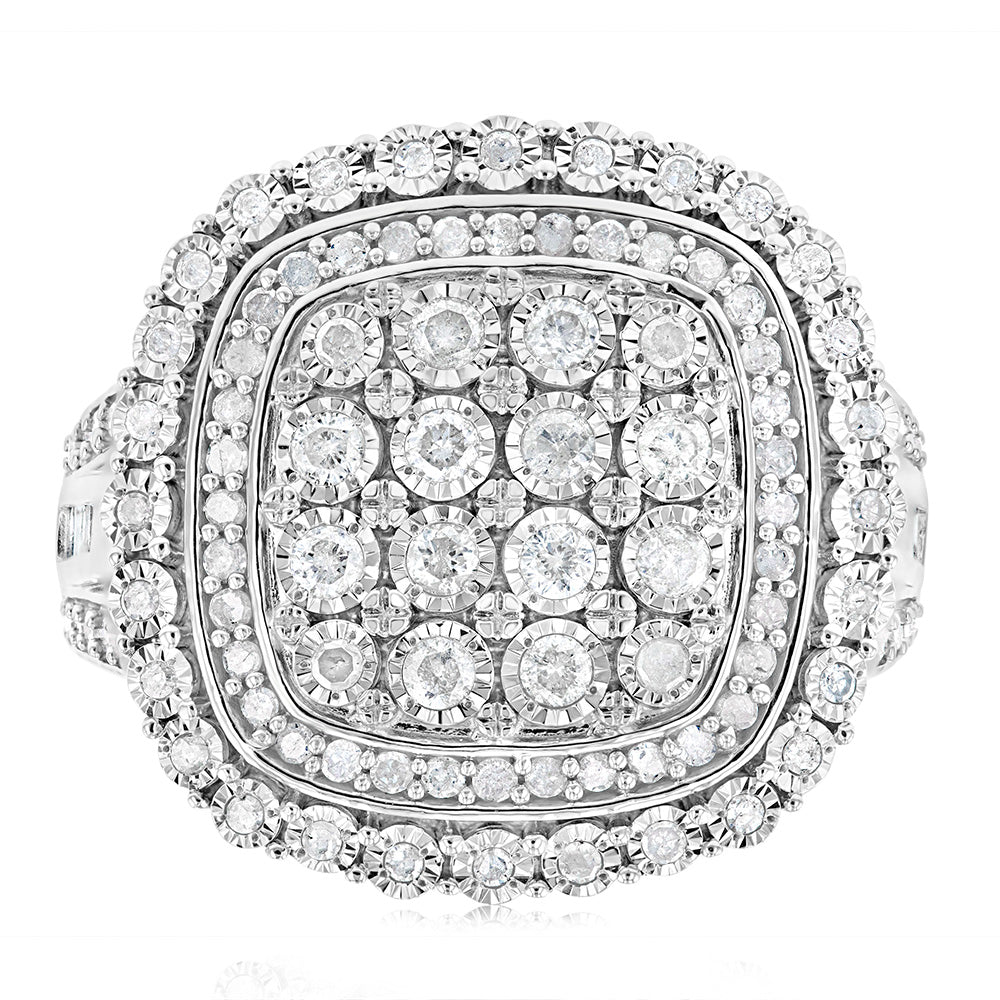 Sterling Silver 1 Carat Diamond Ring With 112 Brilliant & 22 Baguette Cut Diamonds