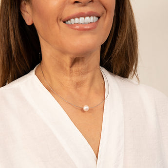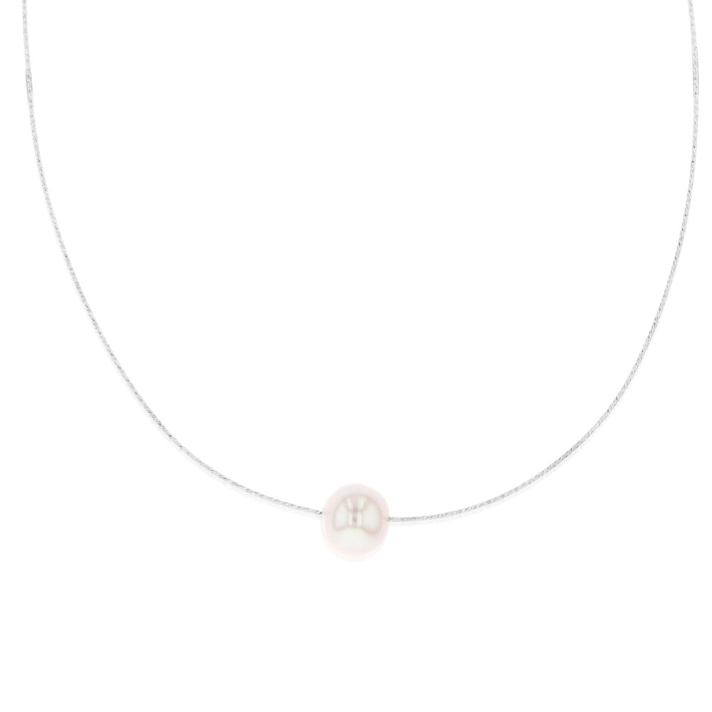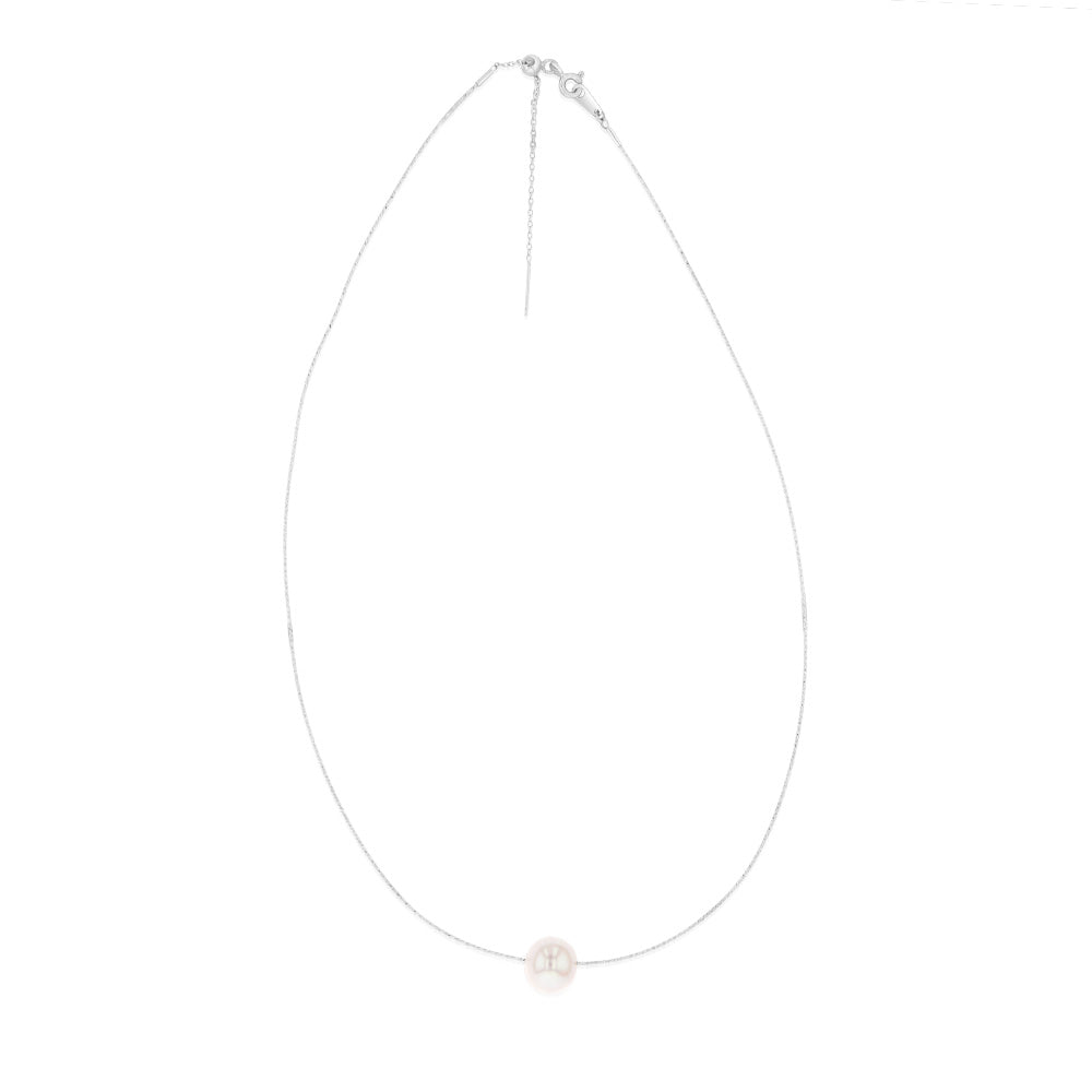 Sterling Silver 10-12mm White Fresh Water Pearl On Adjustable Choker Chain