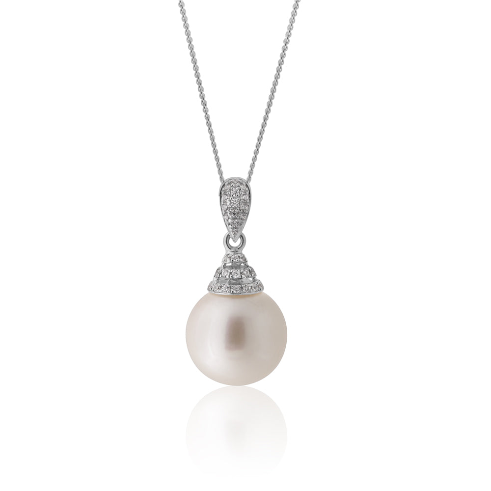 Sterling Silver 12-13mm South Sea Pearl and Zirconia Pendant with 45cm Chain