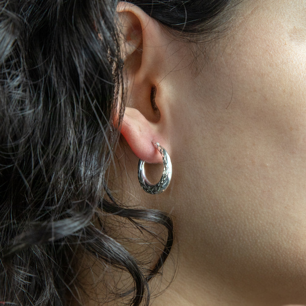 Sterling Silver 12.5mm Fancy Patterned Hoops