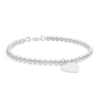 Sterling Silver 19cm Fancy Bead Bracelet with Heart Charm