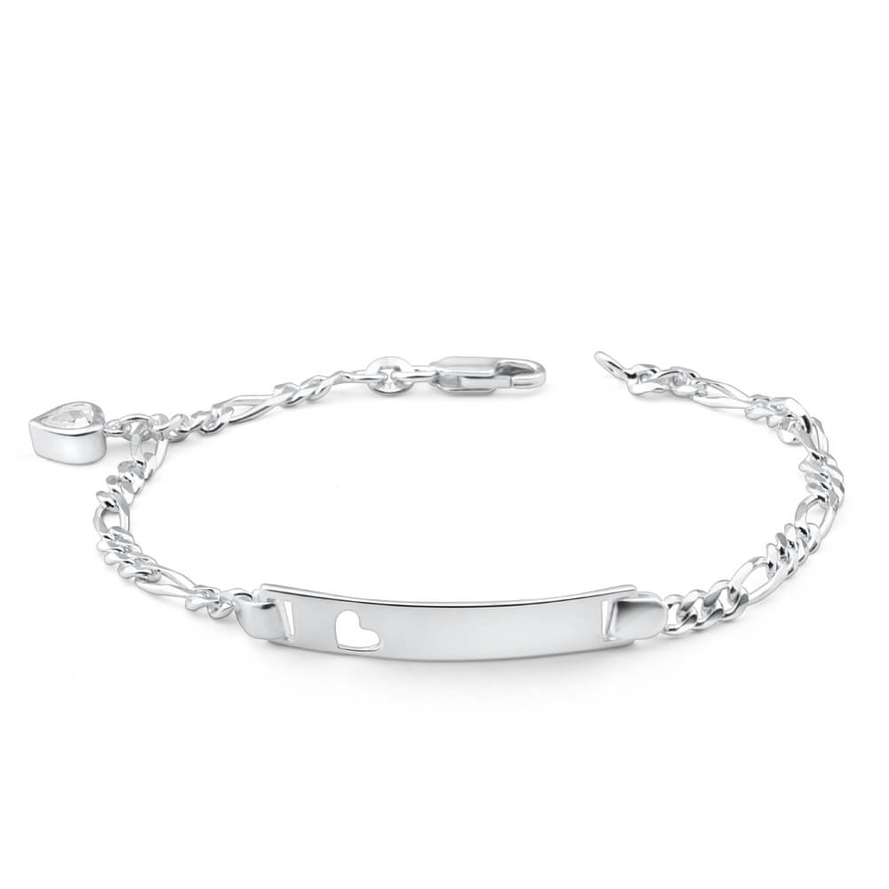Sterling Silver 19cm Figaro 1-3 Open Heart ID Bracelet with Zirconia Heart Charm