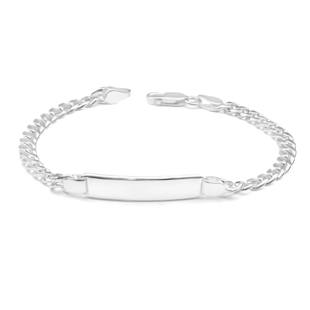 Sterling Silver 19cm Squared & Diamond Cut Curb ID Bracelet