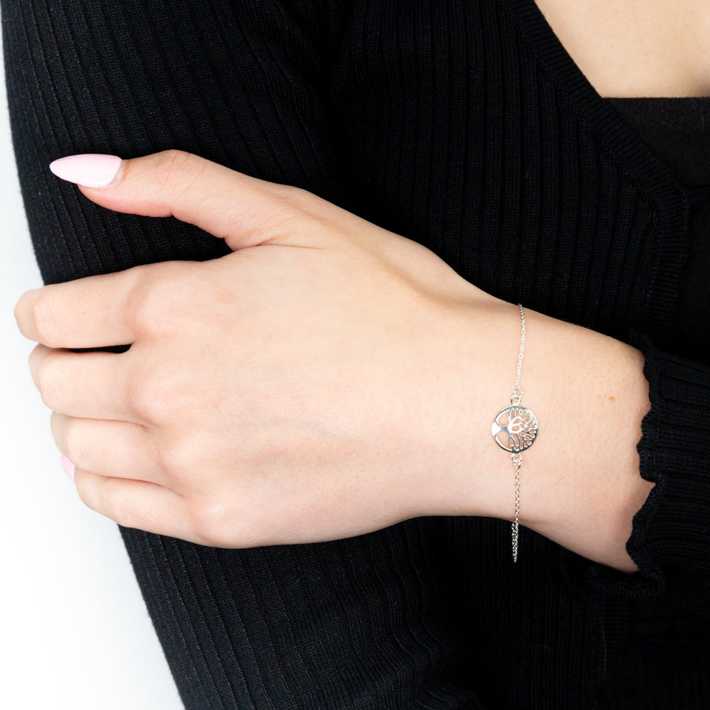 Sterling Silver 19cm Tree Of Life Round Trace Bracelet