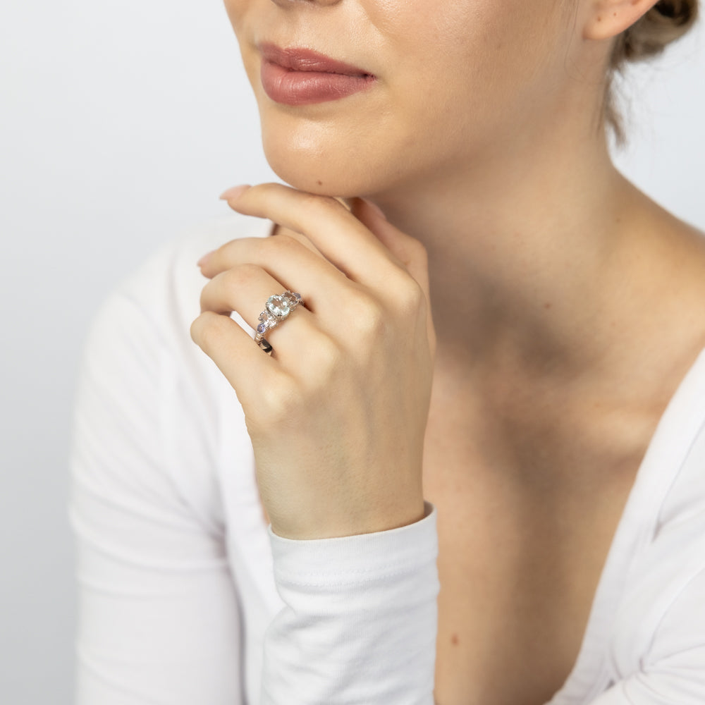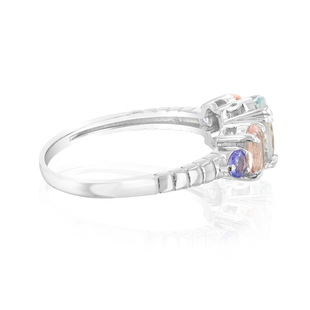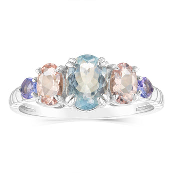 Sterling Silver 2.25Cts Aquamarine, 2 Morganite & 2 Tanzanite Stone Fancy Ring