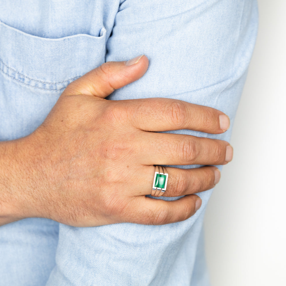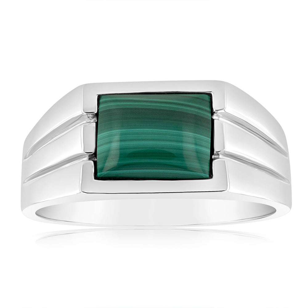 Sterling Silver 2.35 Carat Malachite Gents Ring