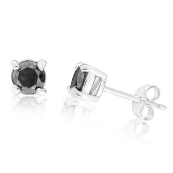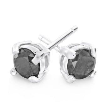 Sterling Silver 3/4 Carat Black Diamond Stud Earrings
