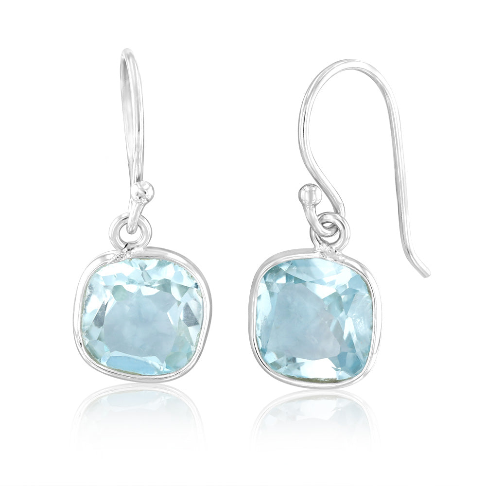Sterling Silver 3 Carat Blue Topaz Drop Earrings