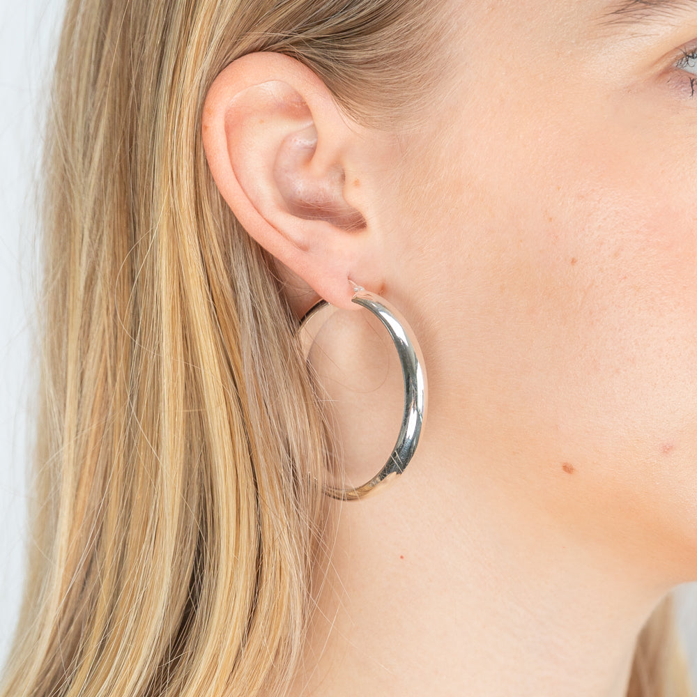 Sterling Silver 40mm Plain Half Round Hoop Earrings