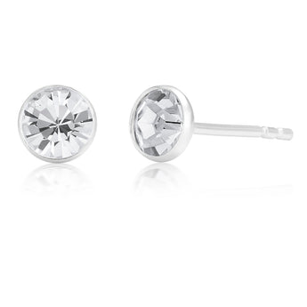 Sterling Silver 5mm White Zirconia Bezel Studs