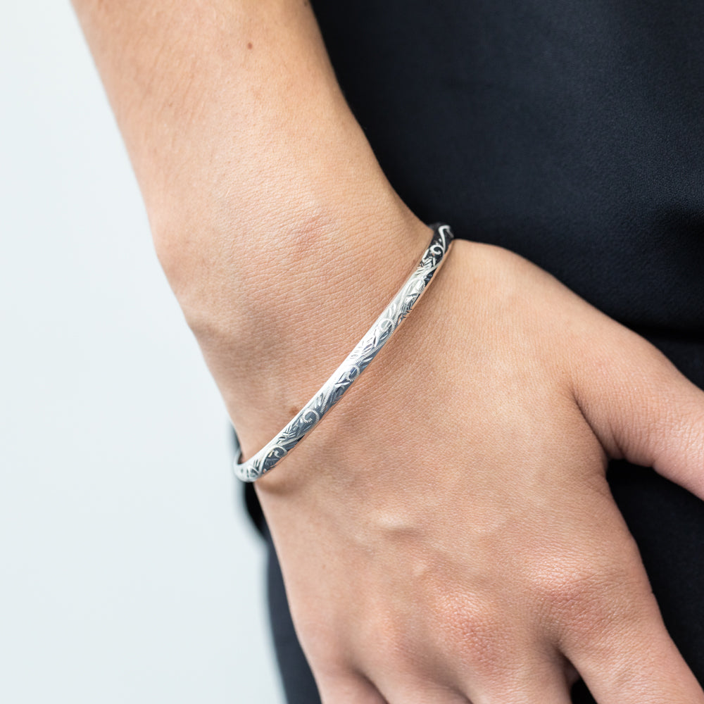 Sterling Silver 5mmx65mm Patterned Engraved Bangle