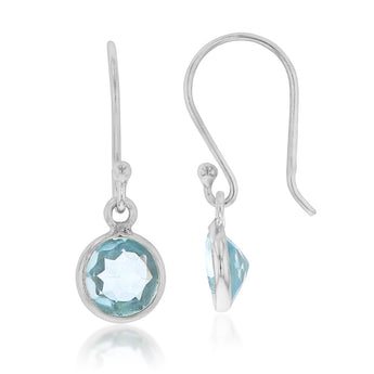 Sterling Silver 6mm Blue Topaz Hook Drop Earrings