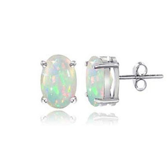 Sterling Silver 7x5mm Simulated Opal Oval Stud Earrings