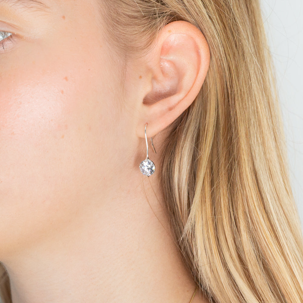 Sterling Silver 8mm Brilliant Cut Cubic Zirconia Drop Earrings