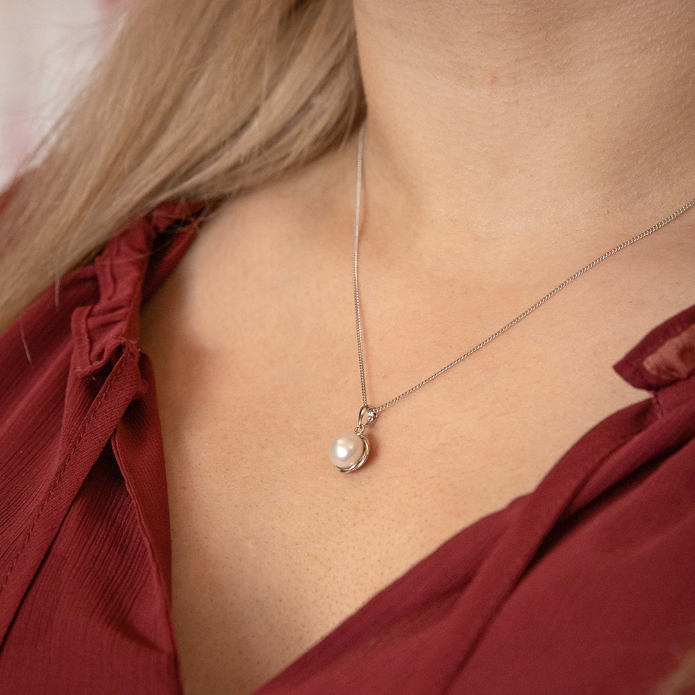 Sterling Silver 8mm White Freshwater Pearl Pendant on 45cm Chain