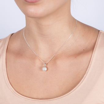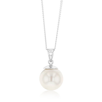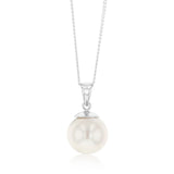 Sterling Silver 9-11mm White South Sea Pearl and Diamond Pendant on 45cm Chain