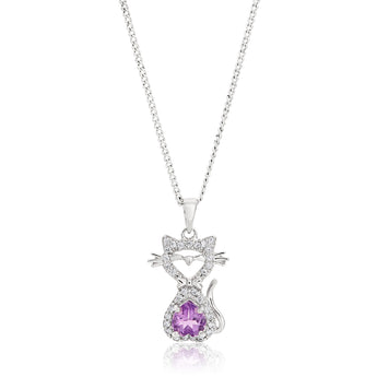Sterling Silver Amethyst and Cubic Zirconia Cat Pendant