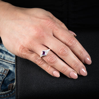 Sterling Silver Amethyst And Cubic Zirconia Fancy Ring