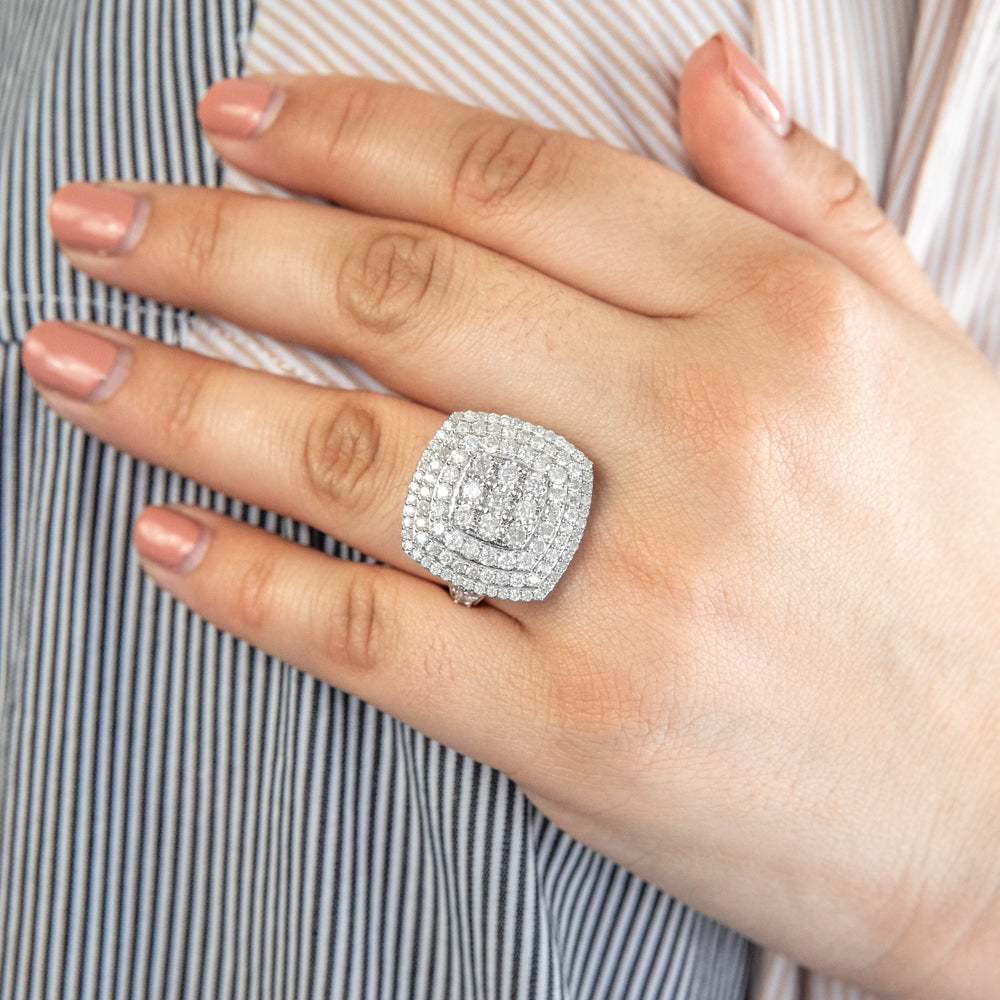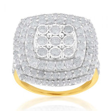 Sterling Silver and 9ct Yellow Gold 3 Carat Diamond Cluster Ring