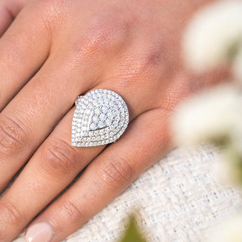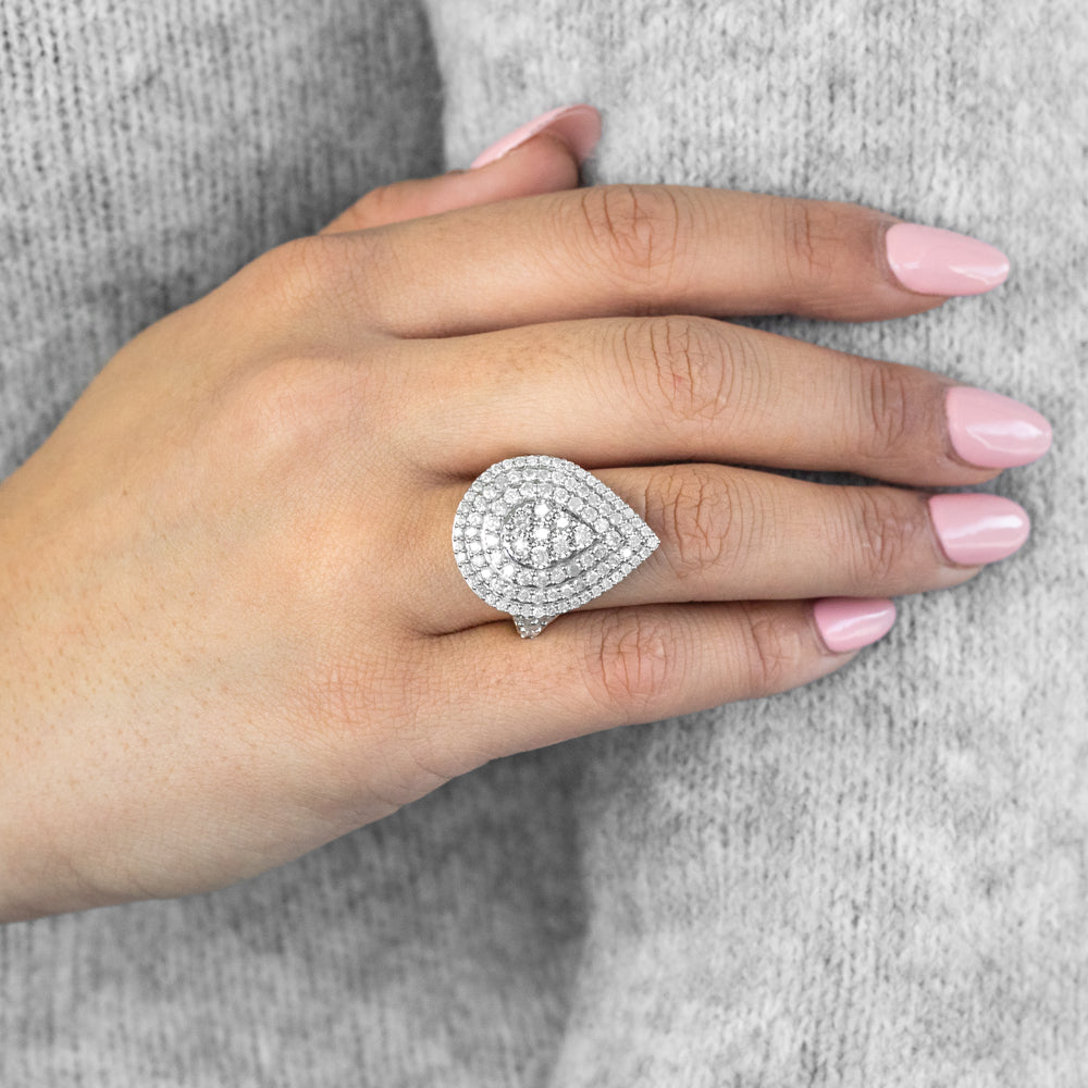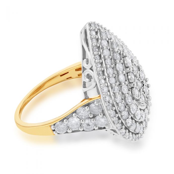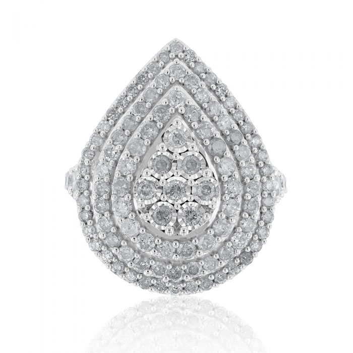 Sterling Silver and 9ct Yellow Gold 3 Carat Diamond Pear Shaped Cluster Ring