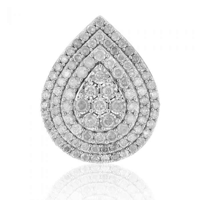 Sterling Silver and 9ct Yellow Gold 4 Carat Diamond Pear Shaped Cluster Ring