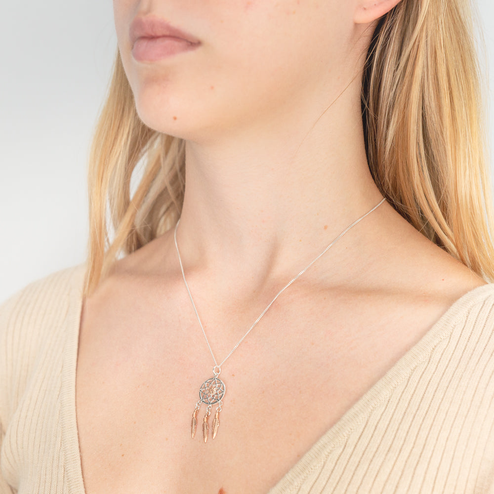 Sterling Silver and Rose Gold Plated Dreamcatcher Drop Pendant