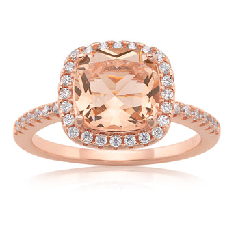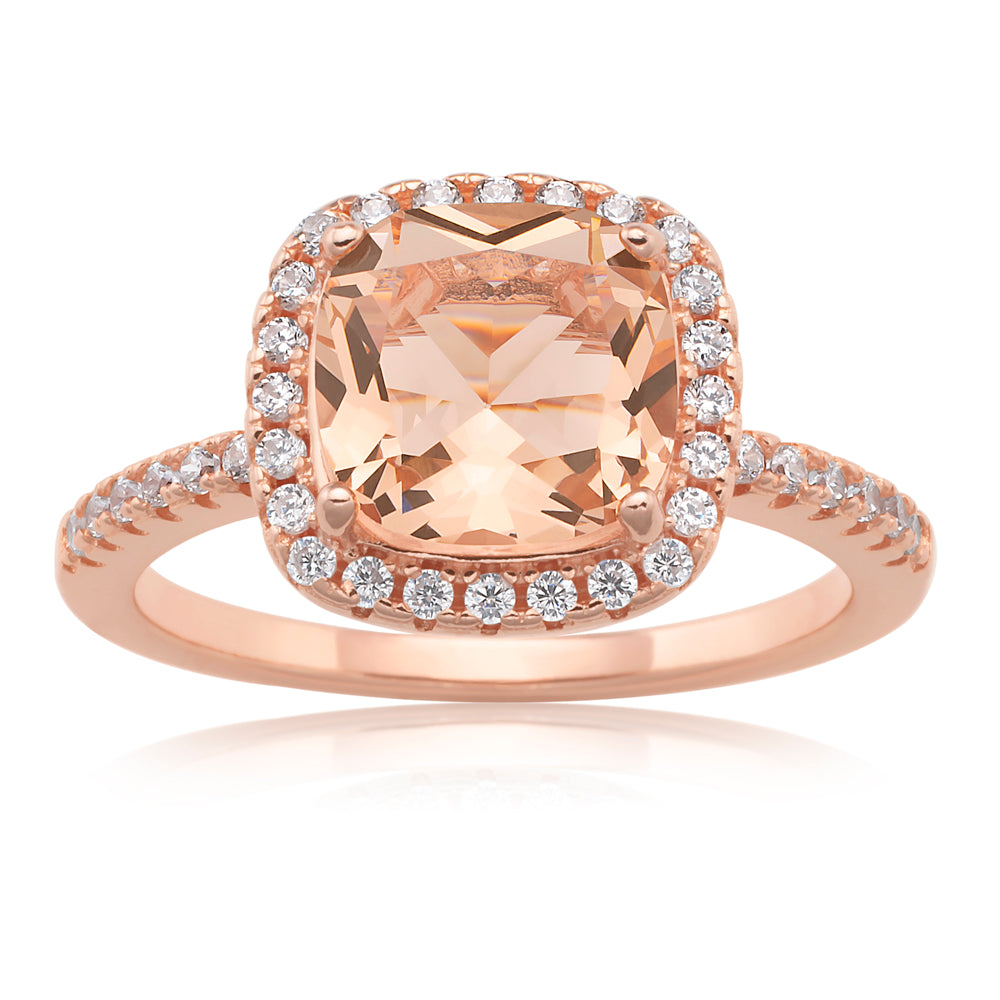 Sterling Silver and Rose Plated Crystal and Zirconia Cushion Cut Ring *No Resize*