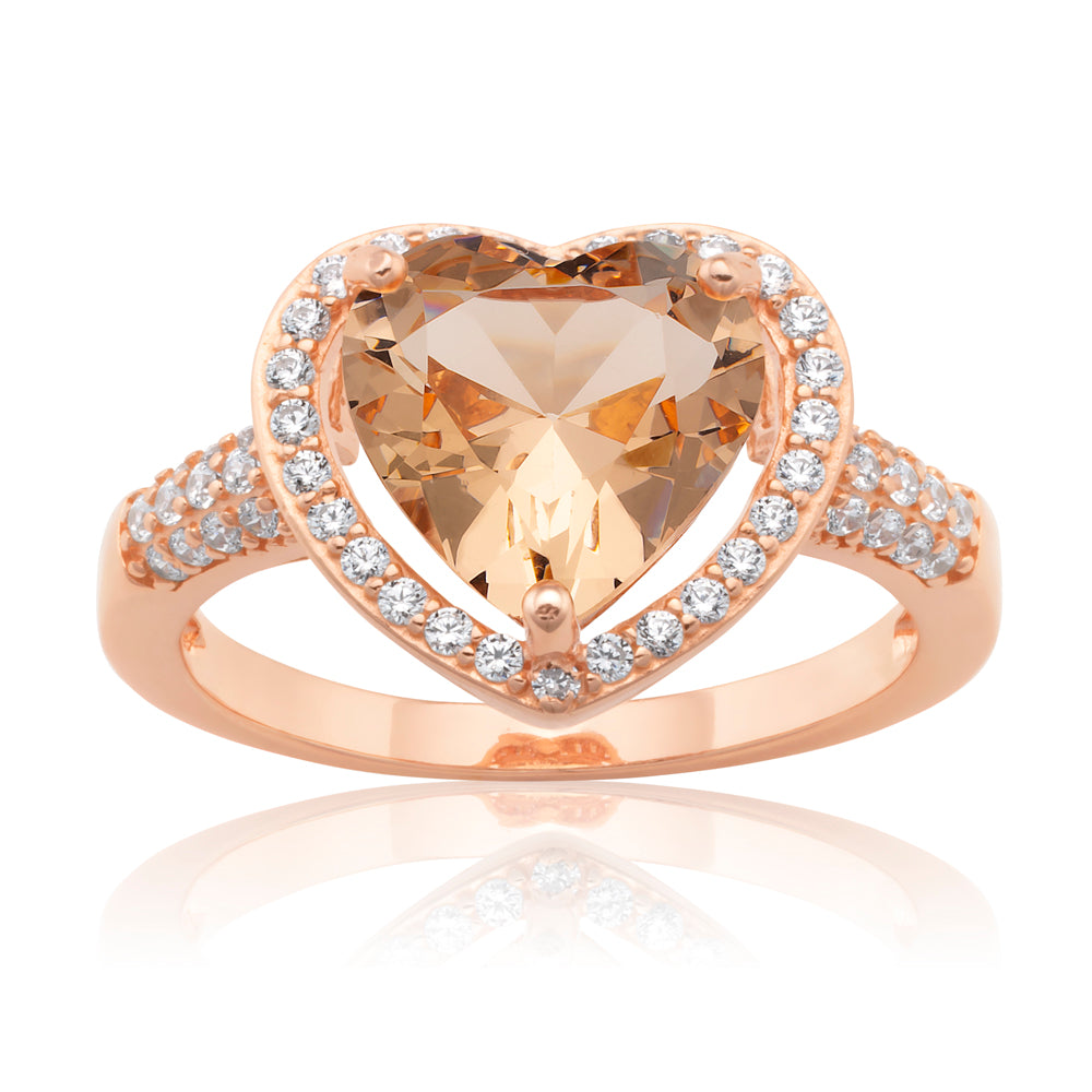 Sterling Silver and Rose Plated Crystal and Zirconia Heart Ring *No Resize*