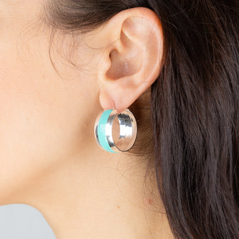 Sterling Silver Aqua Enamel On Broad 23mm Hoop Earrings