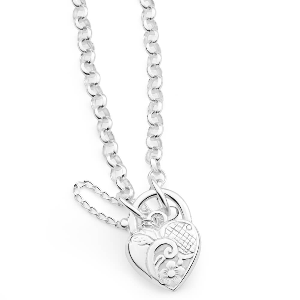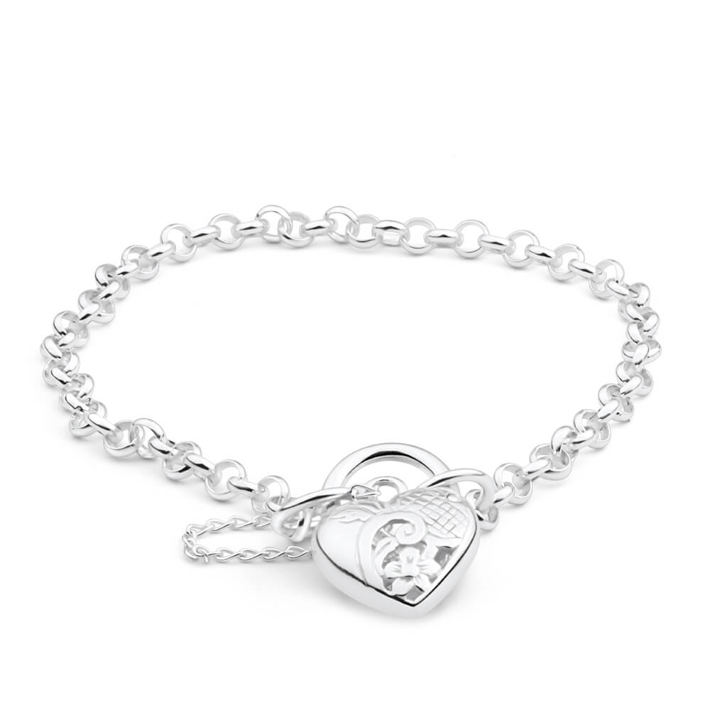 Sterling Silver Belcher Engraved Heart 20cm Padlock Bracelet