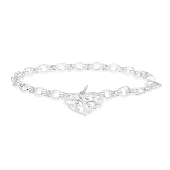 Sterling Silver Belcher Tree Of Life Heart Charm 18cm Bracelet