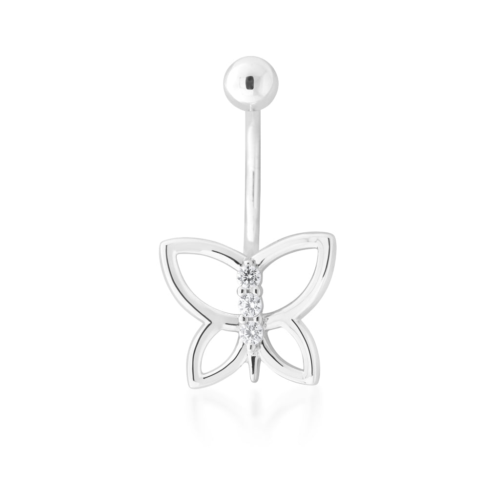 Sterling Silver Belly Bar Zirconia Butterfly