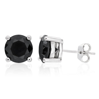 Sterling Silver Black Cubic Zirconia Black 8mm Stud Earrings