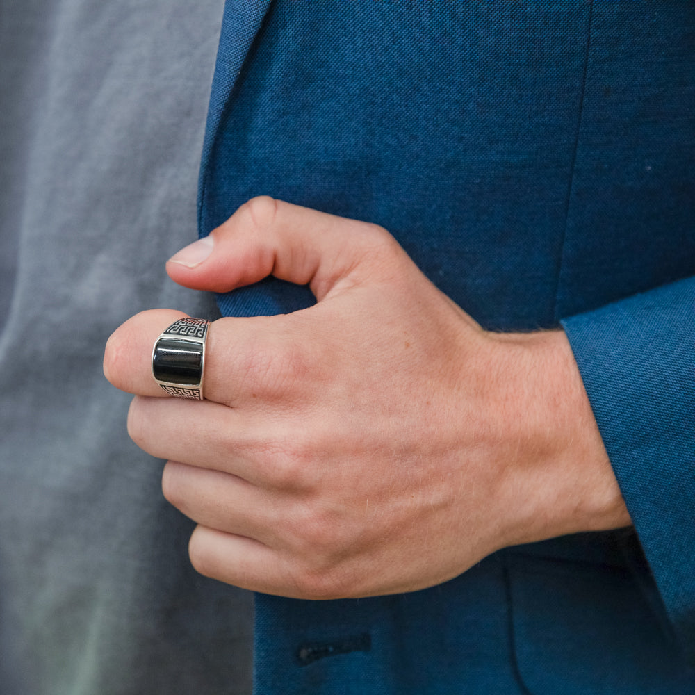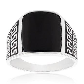 Sterling Silver Black Square With Greek Pattern Gents Ring
