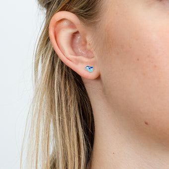 Sterling Silver Blue Enamel Small Bird Stud Earrings