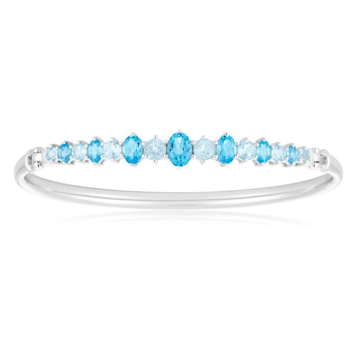 Sterling Silver Blue Topaz Bangle 65mm Diameter