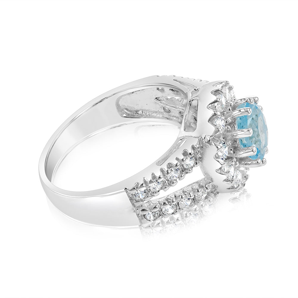 Sterling Silver Blue Topaz & Cubic Zirconia Fancy Ring