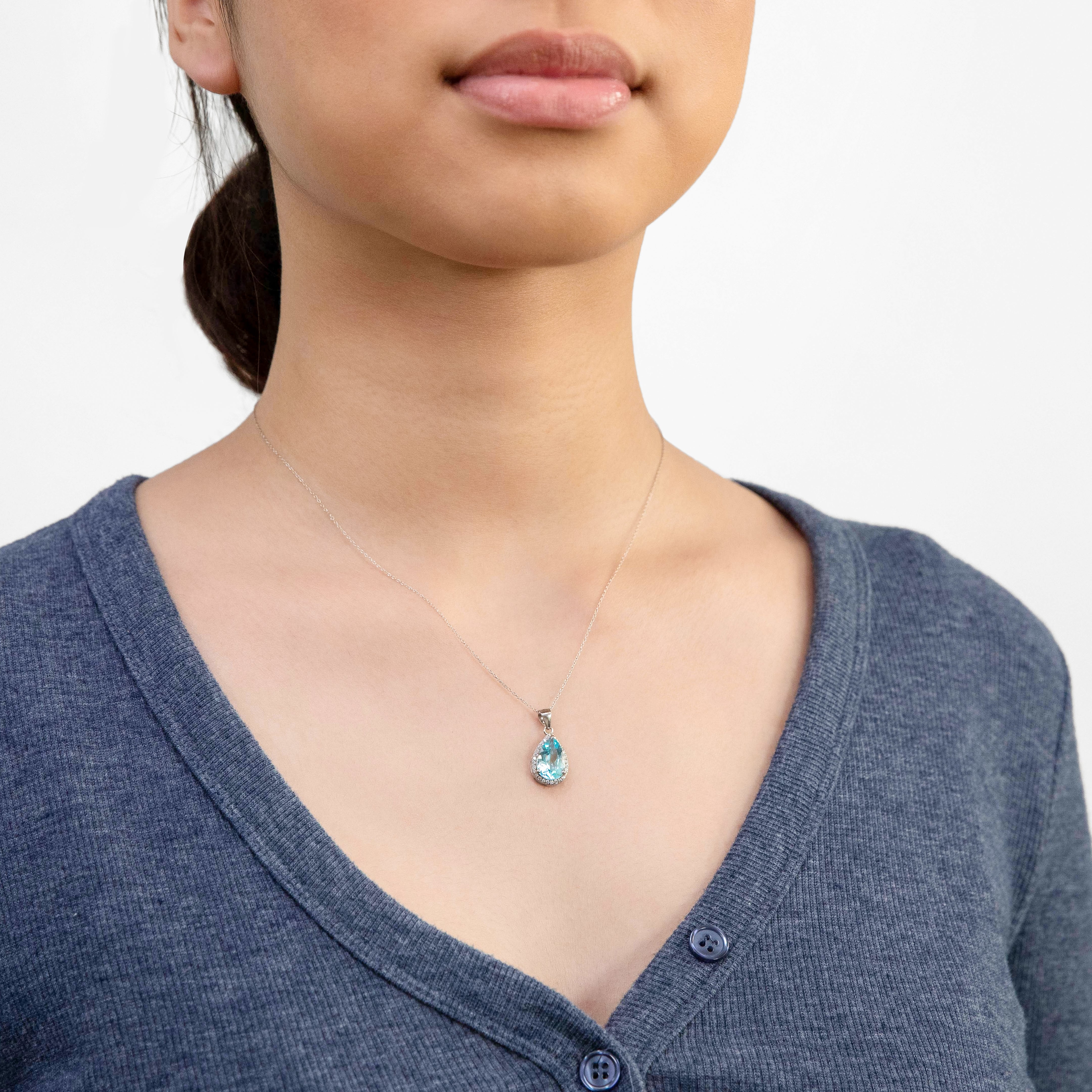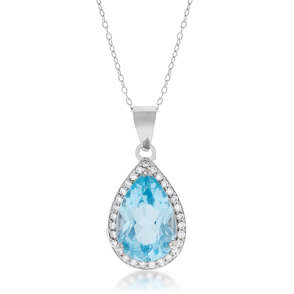 Sterling Silver Blue Topaz Pear 8x12mm and Zirconia Pendant with 45cm Chain