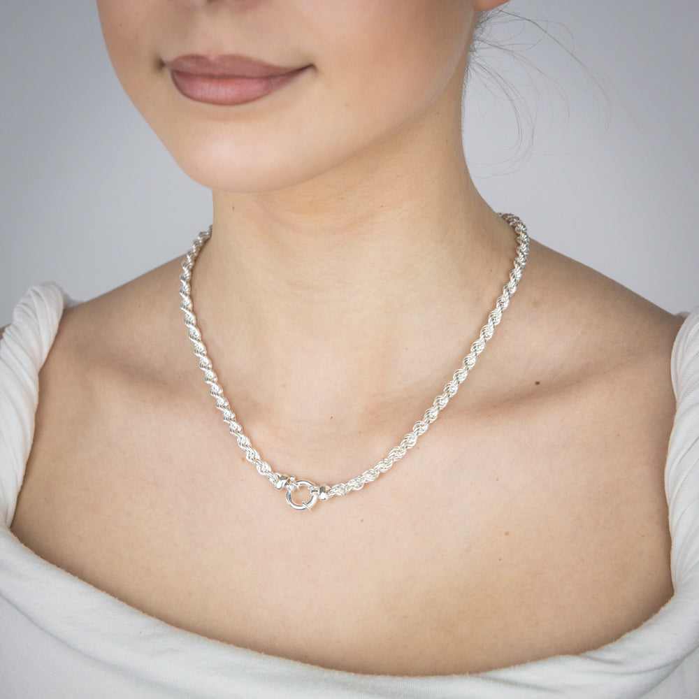Sterling Silver Bolt Ring Clasp 90 Gauge Rope 45cm Chain