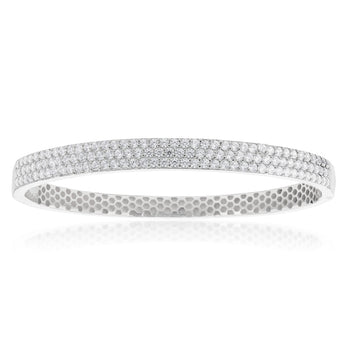 Sterling Silver Broad Cubic Zirconia Studded Hinged Bangle
