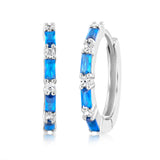 Sterling Silver Created Blue Sapphire Hoop Earrings