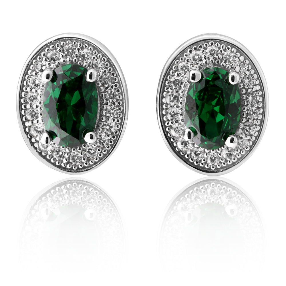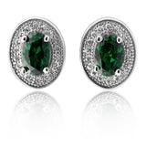 Sterling Silver Created Emerald and Zirconia Oval Halo Studs
